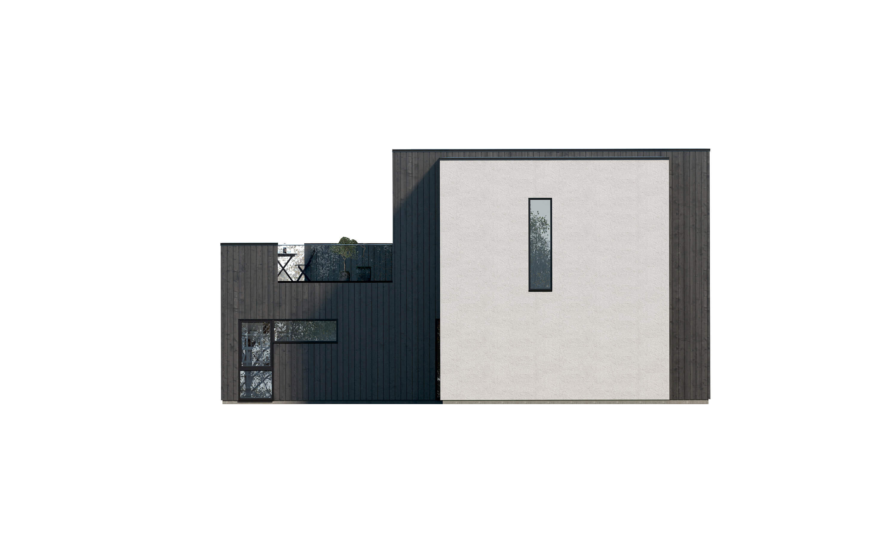 Slottsvik har et unikt design, med en kombinasjon av stående kledning og fasadeplater, og en karakteristisk bro over carporten. Her får du store vindusflater og gjennomtenkte detaljer, som gir boligen et eksklusivt og moderne preg.