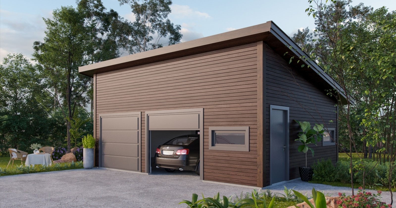 Skrå himling og stort areal bidrar til en garasje med svært gode muligheter for lagring og oppbevaring – både av biler og av sykler, sportsutstyr, hageredskaper og annet du ønsker å lagre i garasjen.